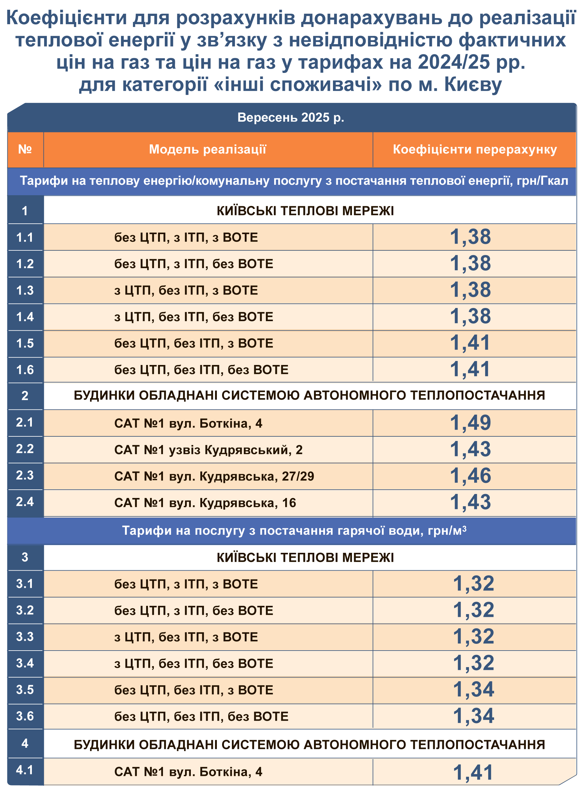 Перерахунок за вересень 2025 року для споживачів категорії «Інші» буде відображений у рахунках, які клієнти отримають у жовтні 2025 року.